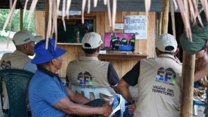 Justo cuando el Presidente se dirige hacia la maloca donde se realizará el evento protocolario escucha la narración del encuentro de Luis Díaz. “¿Están viendo el partido?”, pregunta. “¡Vamos a verlo!” así la comitiva presidencial se sale del protocolo por 5 minutos, y gracias a la energía limpia de sol, pueden ver desde la mitad aquel recóndito paraje de la región Amazónica, cómo “Lucho” despliega su talento en la cancha.